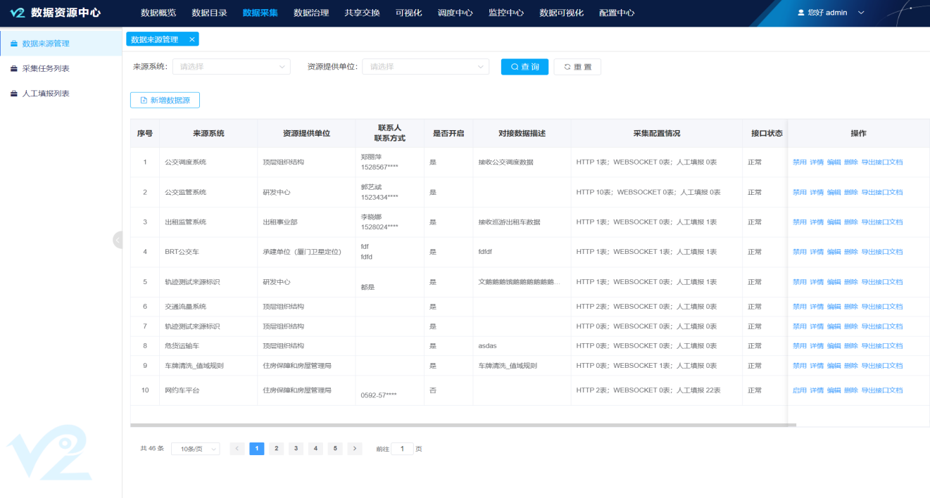 集成各業(yè)務(wù)源系統(tǒng)中將相關(guān)業(yè)務(wù)數(shù)據(jù),通過數(shù)據(jù)匯聚工具進(jìn)行加工、整理并加載到數(shù)據(jù)資源中心,由平臺(tái)對(duì)數(shù)據(jù)源進(jìn)行注冊(cè)、接口配置、接口文檔生成等管理。